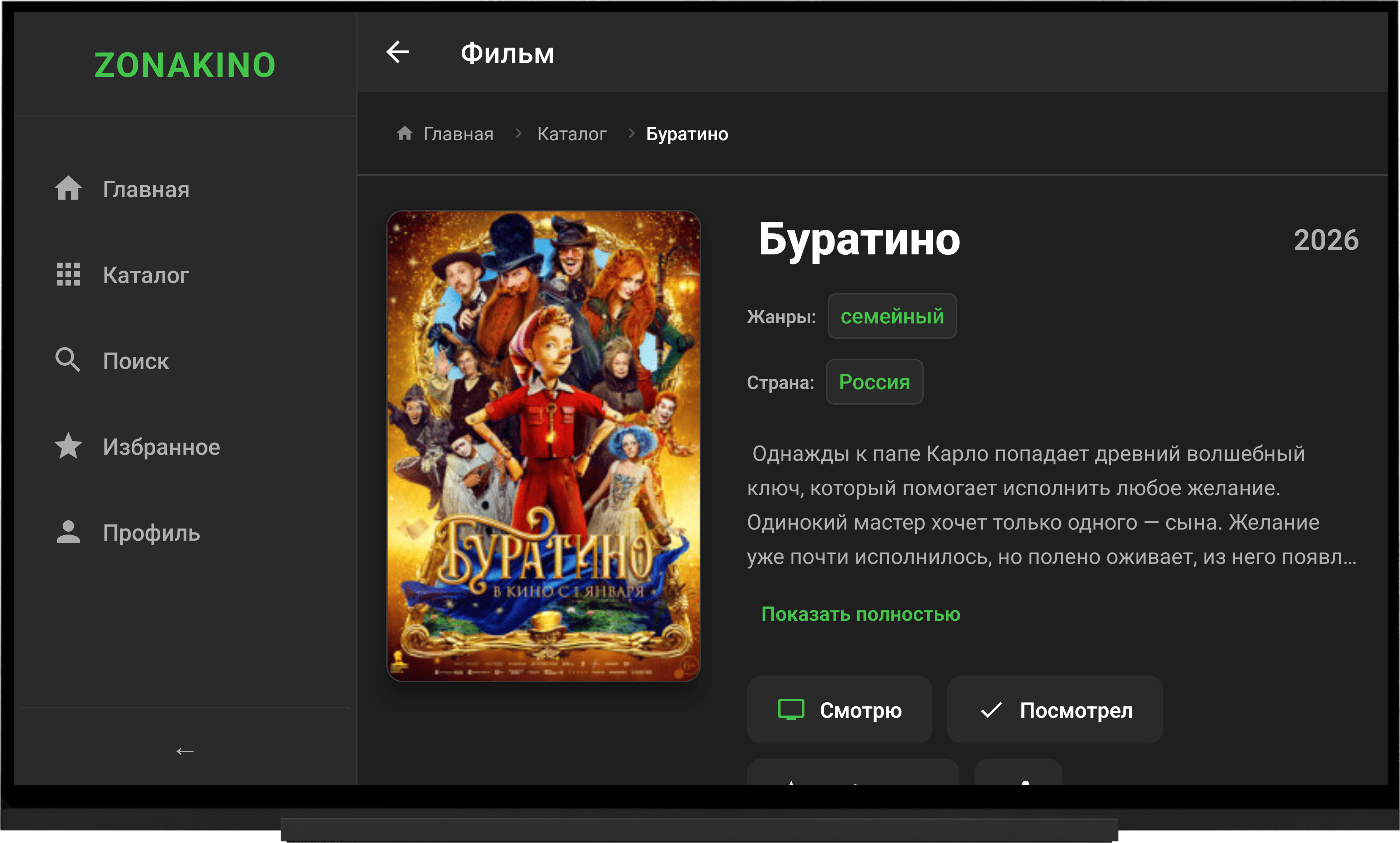Да, ZONAKINO полностью поддерживает Android TV с оптимизированным интерфейсом и навигацией пультом ДУ.